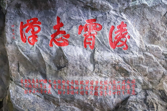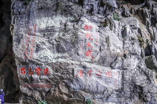 百步云梯前,有很多岩上书画,上面都是一些来凌霄岩游玩后,留下的诗题。