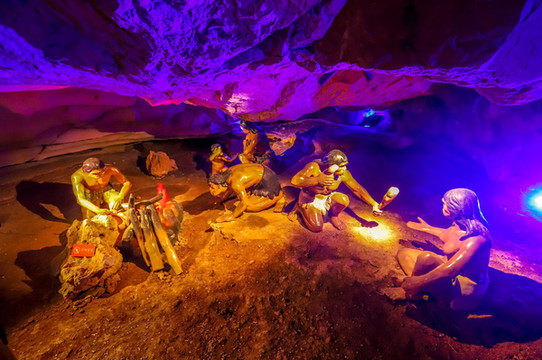 洞穴内也做了一些古人类的生活场景展示,挺逼真的。