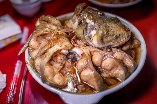 将春砂佳磨成粉末和鱼同蒸,蒸熟的鱼肉肉质浓香弹牙,十里飘香。