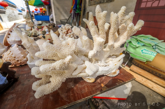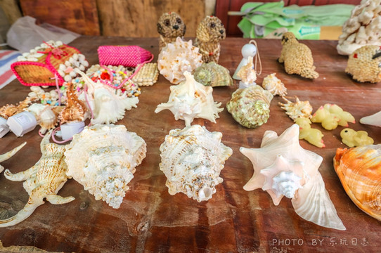 是街尾,有个出售贝壳的摊位,上面海螺壳品类还挺多的。