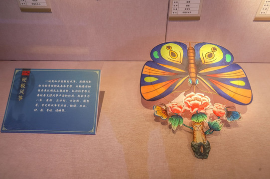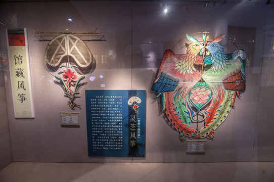 跨入大门,首入眼帘就是被称为“世界十绝风筝”的灵芝风筝。它的顶端架一张藤弓,能在空中迎风发出像乐器古筝被弹奏而发出的乐音,并随着风速的变化,声音也会不停改变,时而悠扬婉转、时而尖声促叫,并声传数里,这是名符其实的“风筝”了。