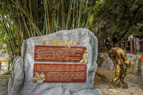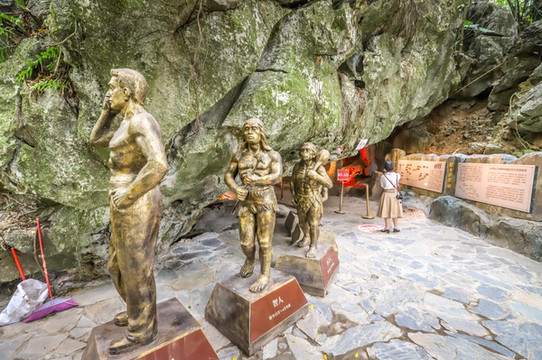 洞口还有古猿到智人到现代人,各时期的一组雕像,感觉是早期的人类身高超矮小,随着社会生产力提高,到了现代人,正常了。