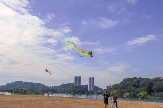 龙串类风筝,由龙头、龙身 和龙 尾三部分组成。龙身 中国 有若干个圆片形的单体组在,每个圆片就是一个风筝。