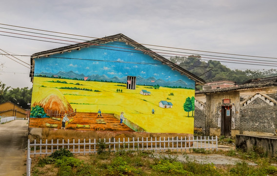 作为美丽的新农村,刚进村子,就能看到一幅幅五颜六色的彩绘墙,上面都是一些描述田园乡间的生活场景画,十分有趣。