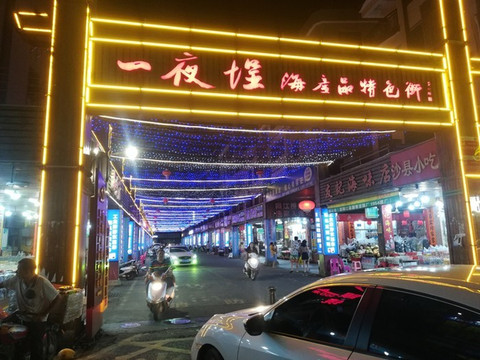 发现所做的攻略别人推荐的几家店都在这条路上, 比如 顺品美食店, 比如 对面的 万州 烤鱼,不过,这也是常理中的事情,在地图上拉了一下规划的路线,从海滨浴场到渔港直线距离不足1.5公里, 闸坡 镇其实并不大,能逛的街也就那么几条。吃完饭后,给店家说一下,逛一下街回来再开车走,同意了!(刚好是周日,来玩的一般下午都回去了,而且不是节假日,人少,人多的时候是不可能有闲余车位的)
