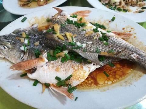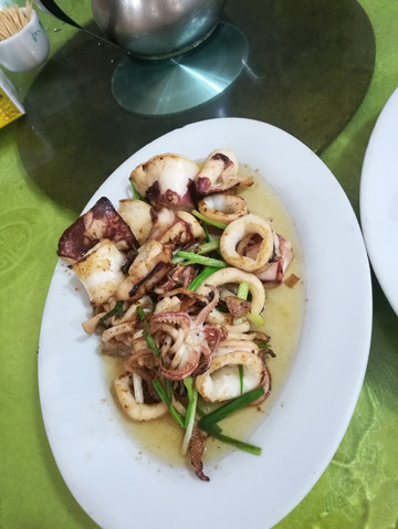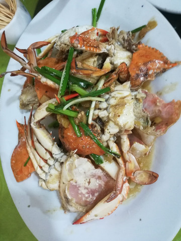 追逐完日出,去放生台转了一圈,然后回老镇上吃午饭,辛苦转了两圈,才在市场边上的小巷子里找到“瑞记小吃店”(地址: 闸坡 镇农贸市场旁29号),小店环境非常一般,估计以前做早餐为主,但蜂友说在市场买了海鲜过去加工物廉价美,故前往一探,不过我们俩人不懂海鲜,看蜂友说是多年老店,也就不考虑太多,直接让店家帮忙在市场买和加工了,一碟炒河粉、一份酱爆鱿鱼、一条清蒸红谷鱼(肉比较柴,不怎么好吃)和一份姜葱炒花蟹,合计230,贵不贵不太清楚,但味道确实不错,尤其炒河粉,不知道加了什么酱汁,味特鲜。
