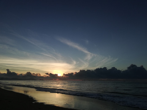 驱车从大角湾回到银滩,已经快12点了,她说,一起去海边走走吧。赤脚漫步在细软的沙子上,海风徐徐的夜,微凉,心里有过很多幻想,幻想她会靠在我的肩膀,幻想牵手看漫天星光……但终究只是俩人一起坐着吹吹风,聊聊天。心里有很多无奈,只能克制自己念想,若不能给予她想要的,只能把她放在心底。