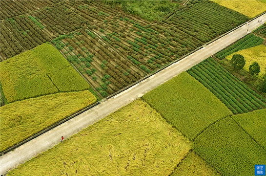马兰田垌里,良田千顷纵横交错,依季节变幻,春为翠绿秋为黄,极尽国画浓淡笔法神韵,又富有现代主义色块油画的意味。其中又以“马兰秋色”为最。