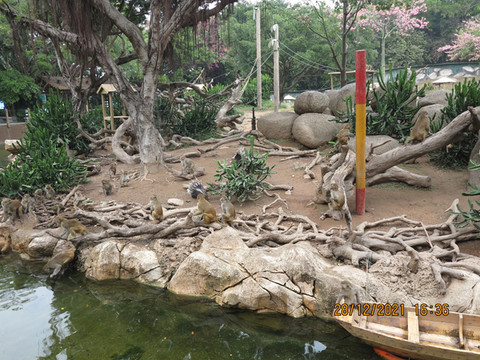 吃饱喝足,驱车直接去了动物园北门,游客不多随意停车,这里也可以自驾进入公园看动物,线路和园区内小火车一致。我们选择步行进入,在天鹅湖畔做小火车游览,一圈小火车还是不错的体验,各种动物近距接触。下了小火车,徒步走穿越青龙山,各种小动物、飞鸟、虚拟恐龙还是不错的。一路走走看看,算着时间去演出场地看了各种动物表演,一路走到熊猫三宝的展馆,后面就是索道,索道是环绕园区一圈的,可以俯瞰各种动物。