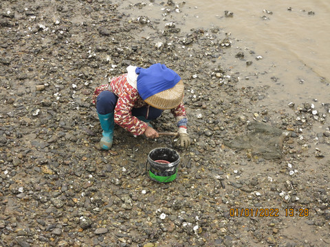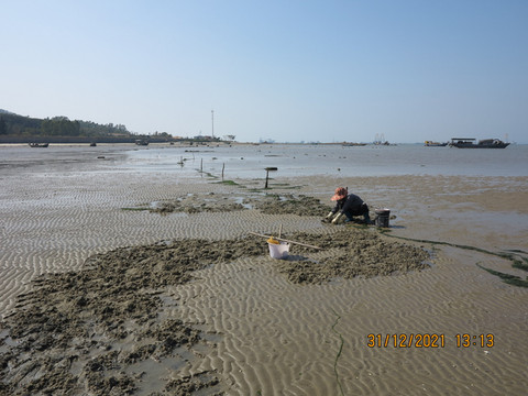 滩涂上都是挖牡蛎的人,这里赶海的海产品和前一天不同,牡蛎螃蟹为主,宝宝玩的开心。