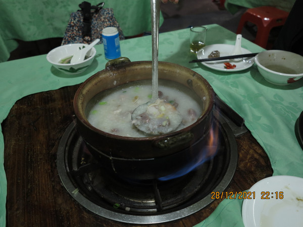 晚上老婆要去顺德,圆三年前的一个心愿,顺德老友记喝猪杂粥。一路过去一个小时不到,疫情加冷空气,居然不用排队,这里可是大大出名,晚上9点开始营业,上过央视寻味顺德,疫情前一般至少要等2个小时以上,今天居然非常顺利喝到了猪杂粥、韭菜猪红汤还有铁板猪肝,口味可以说一个字—“绝”,值得一来。