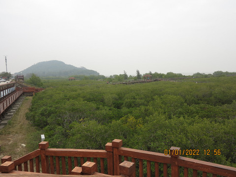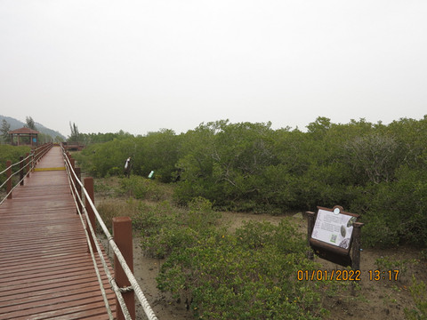 离开这里,不远就是红树林国家湿地公园。公园以亚热带红树林湿地为风景特征、以生态保护为主、以观光休闲和科普教育为辅的多功能生态公园,是海陵岛“新八景”之一,公园内有全省首条最长建在海上的跨海木栈道,全长1公里多,走上栈道与老鼠山遥望相映。
