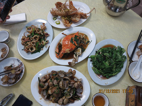 一圈玩好去酒店附近的海鲜排档吃饭,找了秋姐美食,海鲜确实很新鲜,做法单一了一点,口味还是不错的,疫情期间生意确实比较冷清。