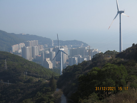 下一站去了天麓山海,这里是个制高点,人造景点,网红拍照地,但风景非常不错,山上有很多电网发电风车,对面山头就是雷达基地,据说以前海陵岛是军事要地。