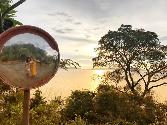 度假村是依山而建的,里面都是蜿蜒曲折的小路,拐角处的反光镜在没车没人的时候也成了拍照的好道具~