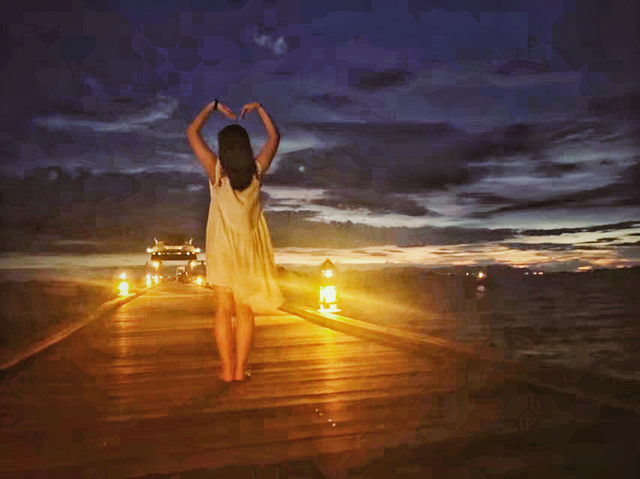 码头夜晚的景色也很美,通道两旁亮起的暖色地灯,搭配夜空大海,气度不凡~