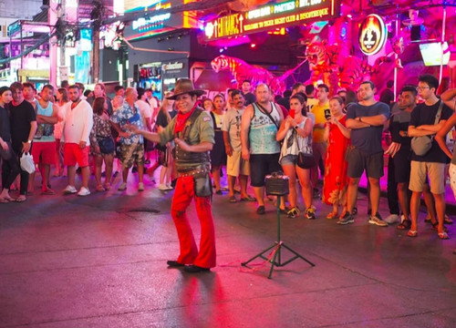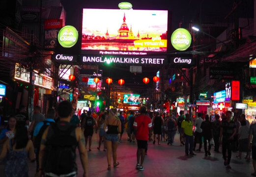 我们乘着双条车来到芭东海滩,这条Thanon Bangla是一条繁华的夜市街,一路上到处都是各式各样的餐馆、咖啡馆和甜品饮品店。但这次我想在附近的Central Patong尚泰百货芭东分店逛一逛,让自己降降温不那么热再出去逛,顺便看看泰国纪念品。