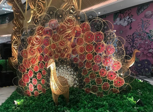 慢慢地逛着每个区域,都很好看~地上都是鲜花和装饰品。让我们继续进去看看吧,有很多泰式风格元素,像兰花、孔雀等。