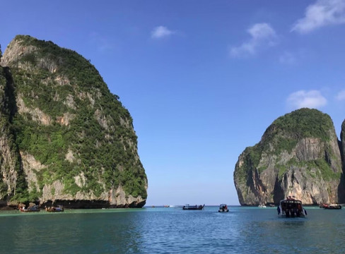 我们乘船前往潜水点,两边的景色真的太美啦。船夫将船停在各个地点,让我们下去拍照或去潜水。每个岛屿都不会花费很长时间,游玩的刚刚好,因为我很累。我可以潜水完之后的一段时间,都是在船上拍拍照休息。 中午的时候还提供午餐和水果哦。