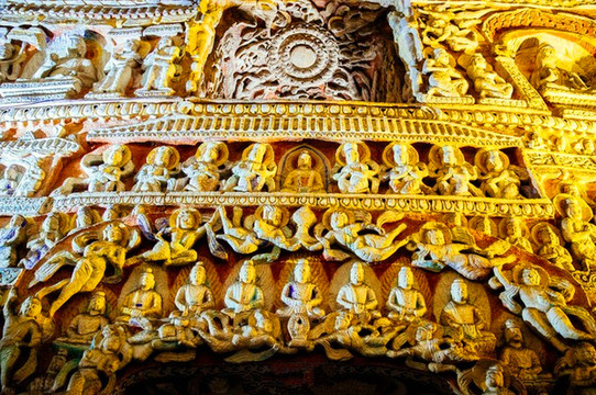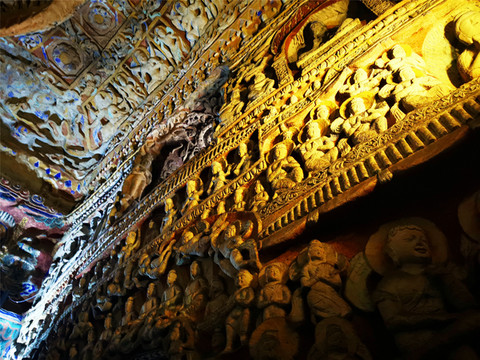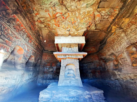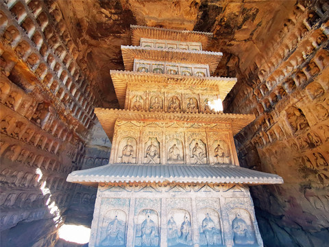 第十五窟以表现千佛题材为主,旧称“千佛洞”,窟内现存造像逾万,故又称“万佛洞”,这些象征释迦分身的十方化佛,排列有序,构图严谨;第三十九窟是云冈石窟晚期规模最大的洞窟,塔柱建筑构件雕刻准确,保存完整,是研究中国早期佛塔的重要资料。