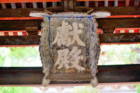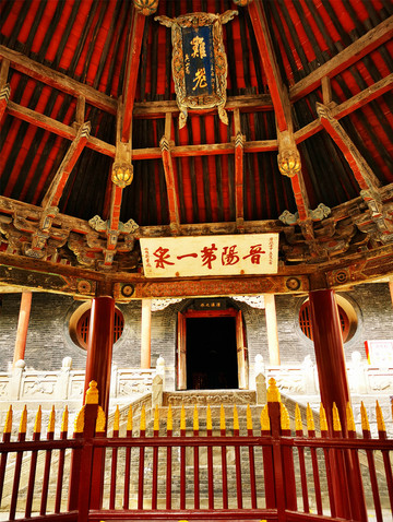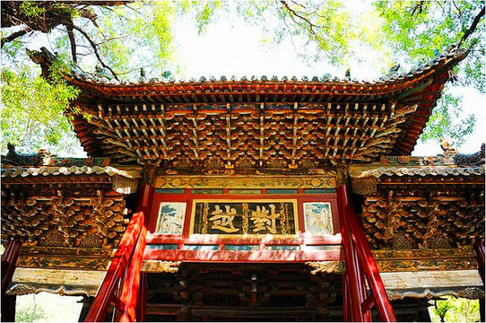 金人台的后面是对越坊,题匾为晋祠三大名匾之一,对越坊的“对”,意为报答,“越”意为宣扬,二字合起来,即报答宣扬祖先功德之意,或者也可以理解为宣扬母德高尚。穿过对越坊,就到了晋祠三宝之献殿,这座建于金代的建筑,采用了中国传统的建筑手法,完全是由木头和木头以榫卯连接,没有使用一根钉子,原是祭祀圣母时陈列供品的场所,殿内悬挂的“献殿”匾额,为金代原物。