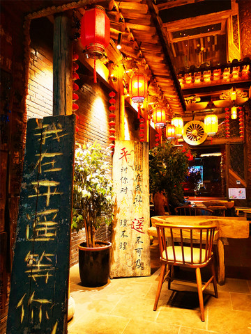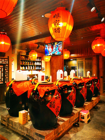 没想到在山西,醋是如此神奇,任何东西一沾醋就会让人眉飞色舞,吃火锅蘸醋,吃面蘸醋,吃肉蘸醋,这种酸不是一种味道的酸,而是具有相当的层次感,酸的让人回味无穷,食欲大增,传统认知里对醋的酸涩已经完全被颠覆,在中国人的厨房里,酸与“五味”其它兄弟姐妹”的排列组合,总是给舌尖带来新的惊喜,山西醋,有着化腐朽为神奇的力量。餐馆隔壁就是自家醋坊“娘家醋坊”,原以为就是旅游景点的网红店,走进一逛却深深被其吸引,店内暖暖的黄色灯光基调,大红灯笼高高挂,各式醋坛酒缸一字排开,这里都是纯手工酿造,正所谓酿醋如同做人,讲究的是厚道,越陈的越香,蜂蜜醋、苹果醋、贵妃醋、红枣醋、山楂醋、枸杞醋……娘家醋坊对醋的研究之深,全体现在这不同的口味当中,其中尤以贵妃醋口感最佳,融合了红枣、玫瑰、枸杞、百合等多种营养丰富的材料,即便是直接喝也可以,入口回味无穷,我们两个对在景区购物深恶痛绝的人,却在醋坊沦陷,一口气买了十斤醋(苹果醋&贵妃醋),实属难得,回家每天喝醋养生走起。