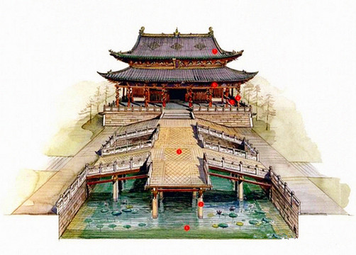 晋祠三宝之鱼沼飞梁,建于宋代,呈十字桥形,如大鹏展翅,位于圣母殿前,形状典雅大方,造型独特,是国内现存古桥梁中仅有的一例(网络借图)。