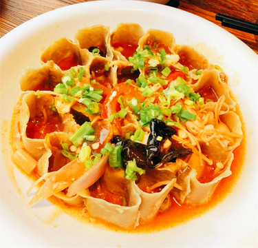 到了大同,自然不能错过凤临阁的烧卖,凤临阁,光听名字就绝对是一个有故事的餐厅,大同著名网红店,早在明代,大同烧麦就格外出名,尤其凤临阁烧麦最为上佳,八国联军攻进北京,慈禧太后与光绪皇帝西逃至大同,当地官员精心侍奉,命凤临阁的大厨在传统烧麦的基础上,蒸制出别出心裁的烧麦,最终大厨们蒸制了九笼不同口味和形状的烧麦,用鸡、鸭、鱼、虾等九种肉馅,捏出牡丹、荷花、芍药、秋菊等九种花形,馅内浇以相应的花形果汁,寓意大清王朝长久兴盛,奔波流亡的慈禧太后尝后赞不绝口,内心也极为欣慰,赞其为百花烧麦,大同烧麦也由此得名,从此凤临阁烧麦有了“天下第一笼”的美誉。百花烧麦出笼时香气扑鼻,褶子好似绽放的梅花,皮薄似玉,肉馅鲜嫩,玲珑剔透,咬开外皮的时候,油汁从肉馅慢慢渗和着面皮在口中一起细嚼,鲜而不腻的软糯口感令人百吃不厌,如果蘸上山西老陈醋、辣椒油,更是别有一番滋味。