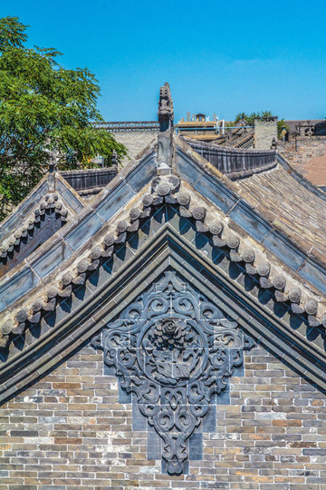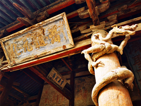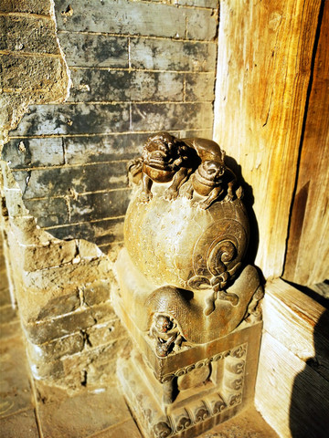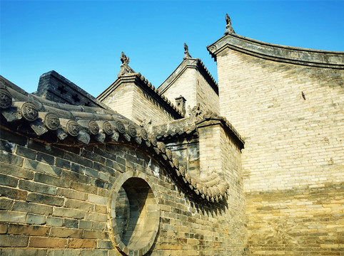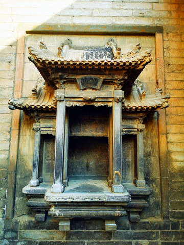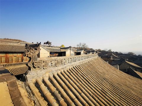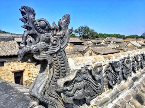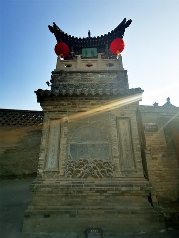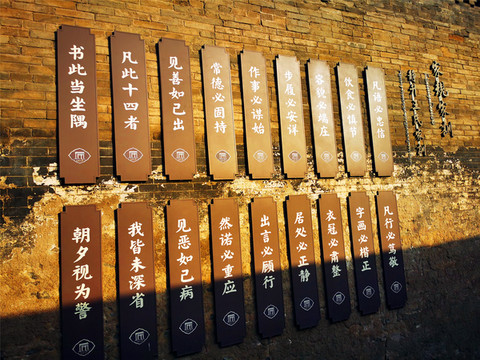 走过古老的静升文庙,只见高大的正城楼上方写有“寅賔”二字,意为“紫气东来”,主人原意是“恭恭敬敬迎接日出”。穿过东门,便来到高家崖建筑群,冗长的家训赫然于外墙上,这是由王家两兄弟王汝聪、王汝成于清嘉庆初年修建,是一座“不规则”城堡,有两座三进式四合院,院墙高大厚实,四合院还保留了窑洞的形式,庭院前堂后寝,布局严谨,处处显露着封建时代的宗法礼教特点,整个大院内外随处可见精雕细刻的建筑艺术品,无论是题材内容,还是雕刻技艺,都堪称艺术精品,最让人津津乐道的是“三雕”:砖雕、木雕、石雕,堪称是王家“三绝”,件件鬼斧神工,栩栩如生,超凡脱俗。王家大院也保留了许多珍品,如嘉庆帝的圣旨、大清万年一统天下全图等,绝世罕见。
