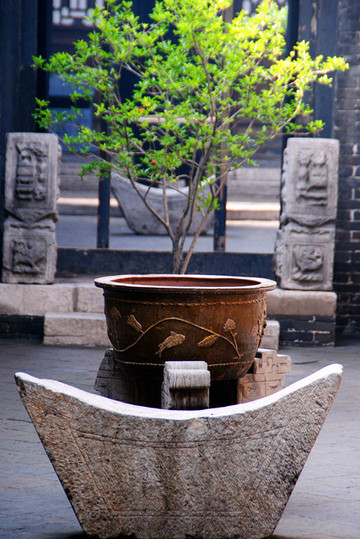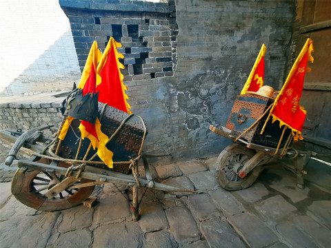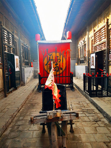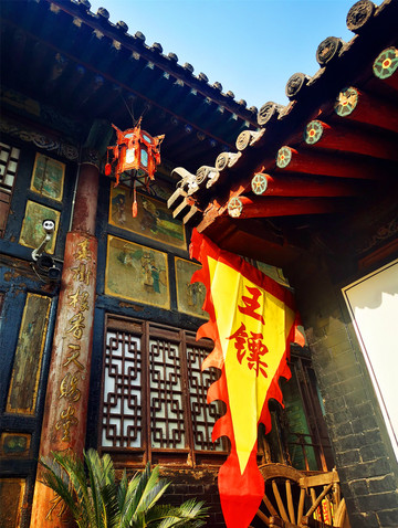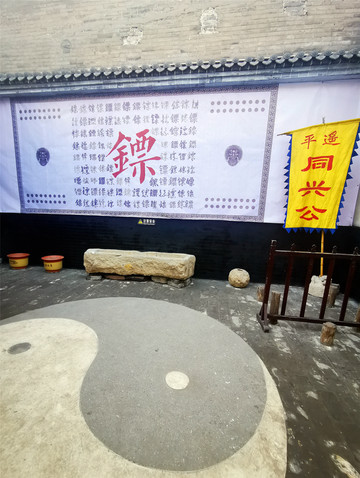 即将离开平遥古城,有感于昨晚的“又见平遥”,今天一定要再去“同兴公镖局”走走。镖局作为早期中国的安保行业,随着晋商的崛起为镖局的兴盛提供了一个绚烂的历史平台,到清朝中叶平遥票号兴起后,平遥商业也开始步入黄金时代,镖局成为冷兵器时代的晋商护身符,但后来随着晋商的衰落、时代的进步,镖局就此没落,成为历史。同兴公镖局,在清代是威震全国的著名镖局之一,由王正清武林大师于清咸丰五年创建,曾为慈禧太后护镖,太后赏赐了奉旨议叙的匾额,并赠黄镖旗,生意也因此做得风生水起。镖旗上写着总镖师的姓,镖师出名则鲜有人劫镖,镖师作为一种高危职业,最忌花拳绣腿式的武术花架子,不远处中国镖局后园就是当年镖师们练武之处,太极阴阳八卦食槽,两只手来回拨拉这个圆球,可以练习臂力,地上的石锁重,据说以前镖师每天要举过头顶100次,还有练散打的沙包等等。