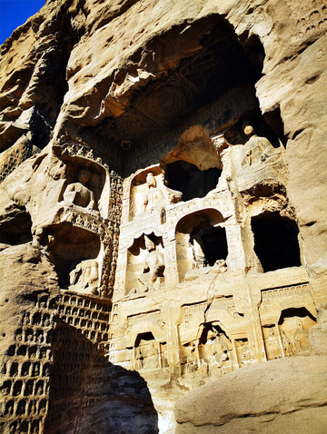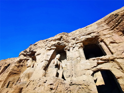 中国三大石窟,敦煌莫高窟重点看壁画飞天、泥塑和藏经洞;龙门石窟是云岗的后续之作,重点看造像题记和碑碣,云冈石窟不像前两者,历经多个朝代开凿,而是由鲜卑族于北魏一朝所建,代表1600年前世界上石雕艺术的最高造诣水平,云冈石窟群大约有一公里长,主要窟龛254座,造像多达5万余尊,雕刻面积1.8万平方米,石雕造型雄奇壮丽、富丽堂皇、千姿百态,属于华丽辉煌的典型皇家风范,是真正的石雕艺术宝库,被联合国教科文组织列入《世界文化遗产名录》。