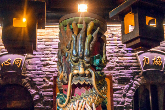 协同庆创建于1856年,也是平遥十大票号之一,传说慈禧太后逃难路过平遥还在此提过银子,并传下口谕。整个协同庆最值得参观的地方,就是票号院子下面平遥最大的地下金库,当年储存着数量众多的黄金白银,还有平遥的镇城之宝——明太祖朱元璋时期樟木雕刻的神龙宝柱,大家来到地下金库,都会争相摸摸这根神龙宝柱,祈求沾沾福气保住财气。协同庆票号的规模虽不及日升昌,但其窑洞式“地下钱庄”比起银窖式钱庄更具特色,正方形金库中心竖立着镇宝之器“神龙宝柱”,周边四孔银窑用于存放大量金银元宝,保留完整,堪称一绝(部分网络借图)。