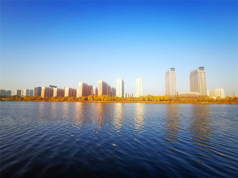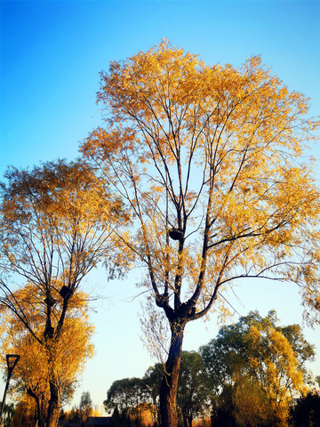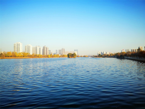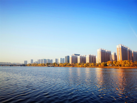伴着早晨清冷的空气,我们去附近的汾河散步,汾河从北向南穿越太原市区,是太原的生命河,如今的汾河经过治理,焕发着不一样的生机,河水清澈,波光潋滟,水天一色,两岸高楼林立,岸边长廊上都是早起锻炼的人群,金黄的树丛间随处可见高高的鸟巢。
