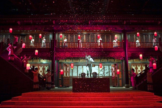 “又见平遥”是知名导演王潮歌深度融合平遥的历史和人文打造出的大型室内情境剧,整场演出1.5小时,讲述了平遥古城票号东家赵易硕,为保分号王掌柜的一条血脉,抵尽家产,与同兴公镖局232名镖师同去沙俄,七年过后,赵东家本人连同所有镖师全部死在途中,而王家血脉得以延续的故事,表演将清末的平遥城、镖局、赵家大院、街市、南门广场、山西面食、一诺千金的晋商精神全都融进剧情里,用诚信诉说了一段血脉传奇,也让我们更深刻地理解这厚重的晋商精神。观众依次进入不同场景,面对面与演员们互动,观众既是观众也是演员,整个演出分为“灵魂回家”、“面秀选妻”、“镖师洗浴”、“繁华闹市”、“穿越问责”、“心系故乡”等片段,特别是“灵魂回家”,充分利用了声光电的效果,在背景幕布中设置了很多暗门,把镖师们灵魂出窍表现得淋漓尽致,现场非常感人,我也是几度落泪(部分网络借图)。