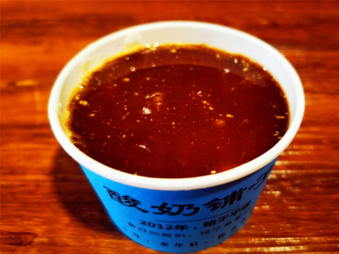 陈醋酸奶,原以为味道会很奇怪,但是又忍不住好奇想尝试一下,结果出乎意料的好吃,酸甜度店家会调到你满意为止,并不会太酸,微微的醋酸和酸奶的香甜巧妙融合在一起,味道倒真是不错,绝对不违和。