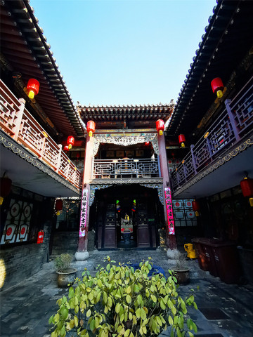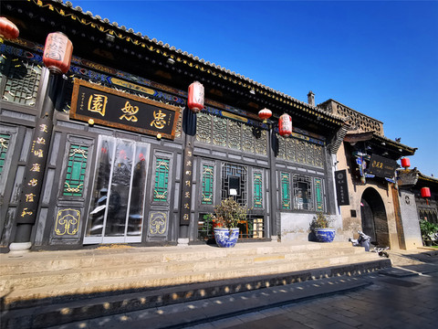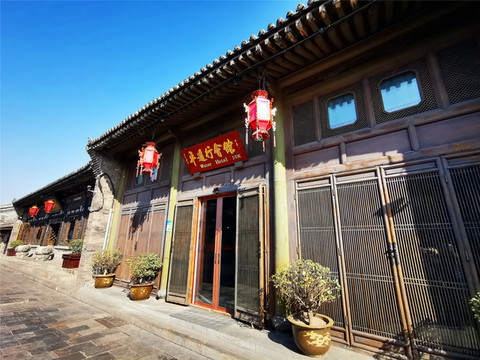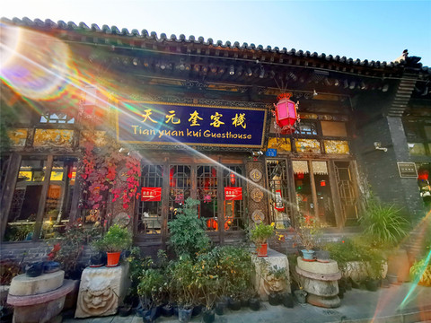 提前联系过客栈,说是在古城东门接我们,于是在东门,我们看见了两辆迷你小电驴,就这样载着我们和行李,悠悠荡荡进了城,穿街走巷间,眼前出现一座匾额高悬的宅院,这应该就是我们入住的忠恕园客栈了。忠恕园客栈地处古城至尊至首之位,是东南门头街首院,原是清朝举人的宅邸,更曾是慈禧太后西行下榻的“皇家驿站”,传统的三进院落宽敞大气,飞檐相对,翘角高耸,完美展现了明清时期的古建风格,难怪老佛爷也对这里“青睐有加”,夜里掌起灯来更添华彩。