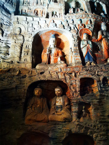三是没落期(主要分布在第20窟以西):北魏迁都洛阳后,大规模开凿活动虽然停止,但凿窟造像之风在中下层阶层蔓延起来,开凿了大量的中小型洞窟,类型复杂,式样多变,中国佛教造像艺术全面走向平民化、世俗化,并成为龙门石窟开凿的样本。