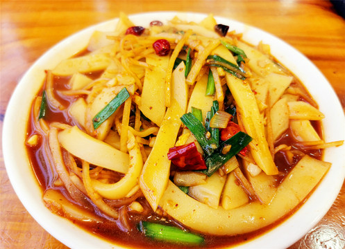 洪武记饭店热情的邀客声将我们吸引,入内品尝,果然不愧其网红餐厅的名声,后院的客栈也很有风格,我们正好坐在窗边,温暖的阳光洒在桌上,窗外景致一流,本地阿姨服务员一直跟我们聊着家常,还周到的送了沙棘汁,桌上摆着各种口味的本地醋可以试饮,莜面栲栳栳摆盘精美,浇上酱汁后香气四溢,黄米凉糕Q弹爽口,老陈醋焖牛肉更是店里的招牌,牛肉软糯入味,加上陈醋的点睛之笔,让人胃口大开。