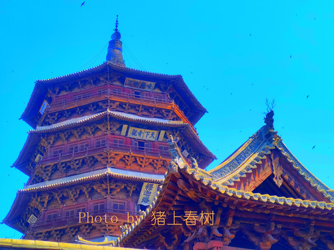 看了这个古老的木塔,没有一根钉子搭建,的确工艺精湛。木塔附近的鸟儿,传说没有脚趾,无法到达地上行走,所以木塔上停留好多的黑色鸟儿,具体叫啥鸟,我就不说了。
