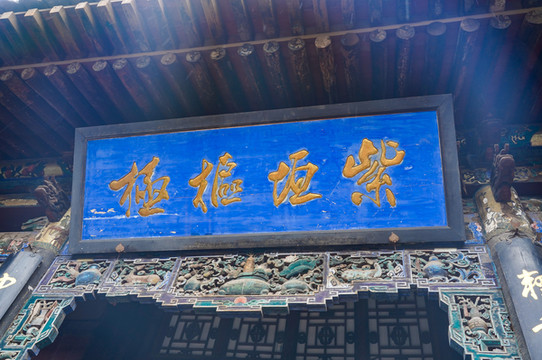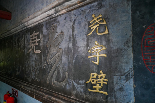 进门处就是一个壁照,上边书写着一个巨大的根字,两旁四个篆字,”饮水思源”,正是 山西 移民寻根情结的最好注解。