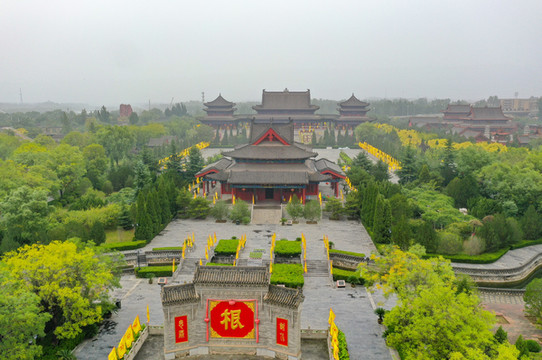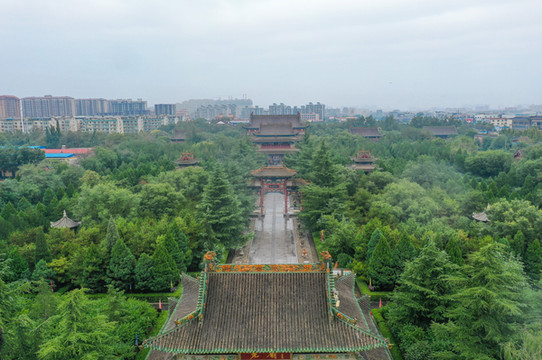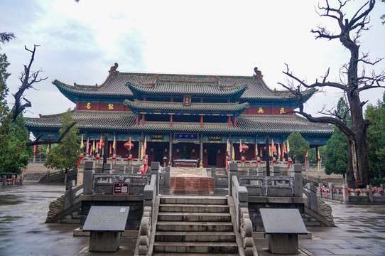 广运殿殿宽9间,进深5间,周设围廊32间,内外共计77间,高达27米,取广以配天,运以载地之意。这里是祭拜帝尧的主要场所。