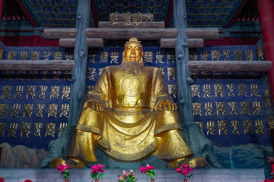大殿正中间为尧的铜像,高5米,两边为4个大臣铜像,高4.1米。每逢初一、十五这里都香客不断,每周末景区还举行“着汉服、巡古礼,拜帝尧”大型汉服祭拜活动,游客也可以穿着汉服,跟随工作人员一起举行拜尧仪式,以表达对帝尧的崇敬。