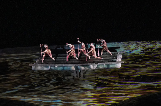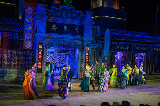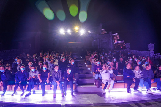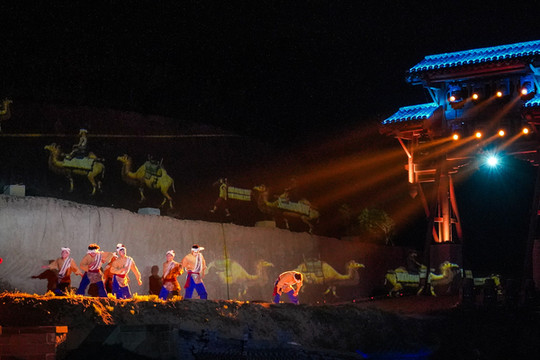 观众在360度旋转观演台上可以聆听到星空下的黄河奔流,观赏“九曲黄河第一镇”的商贾传奇。