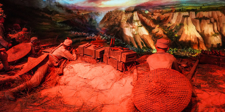 它以巨幅油画与实物和模型相结合,利用计算机控制的声、光、电技术,令人仿佛置身于浓烟翻滚、战火纷飞的场景中。