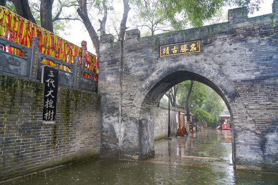 整个景区为现代原址复建,古迹层面只有金代的石经幢,展览的千年槐根和二、三代大槐树。