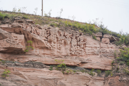 这些风化穴形态千奇百怪,被形象地称为“石沟、石龛、石窟、石书”或者以各种动物或传说的怪物命名,如“游龙、跳蛙、皎鲨、老鹰“等。
