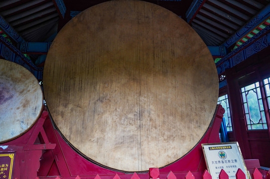 据说工匠们制做此鼓历时半年,寻遍全国十三个省市才觅到了这两张牛皮,2000年,“中华帝尧鼓”被载入了吉 尼斯 世界记录。