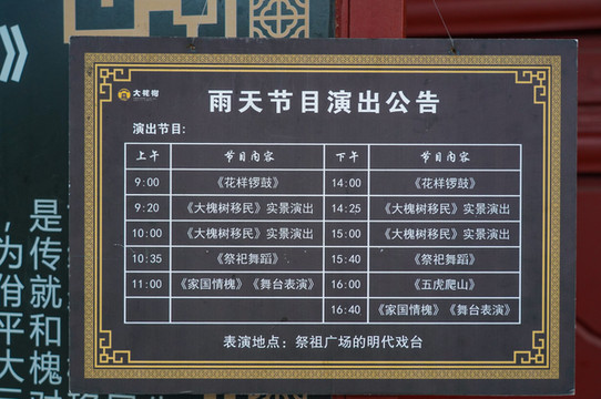在祭祖广场的明代戏台,每天都有很多精彩的演出,具体的时间可以参考景区内的节目演出公告。