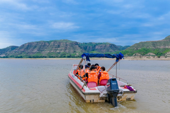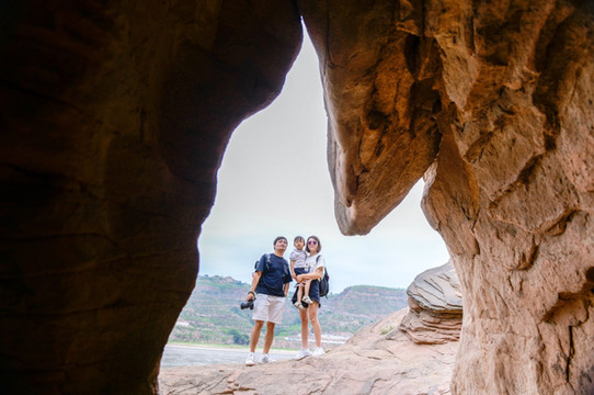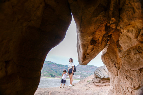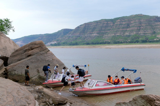 黄河画廊离碛口古镇开车半个小时,到达后乘坐快艇可以观看天然浮雕,小朋友在游玩中既感受了快艇的体验,也看到了不同形态像书法又或图案的浮雕,小朋友很感兴趣。