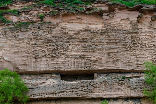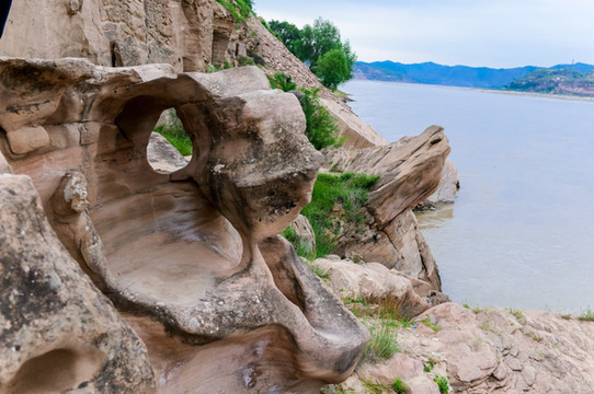 离碛口古镇不远处的黄河画廊,是世界上珍贵的自然遗产。岸边的砂岩石经过黄河水不断冲刷风化,自然形成的类似浮雕壁画,具有浓郁的艺术感染力。